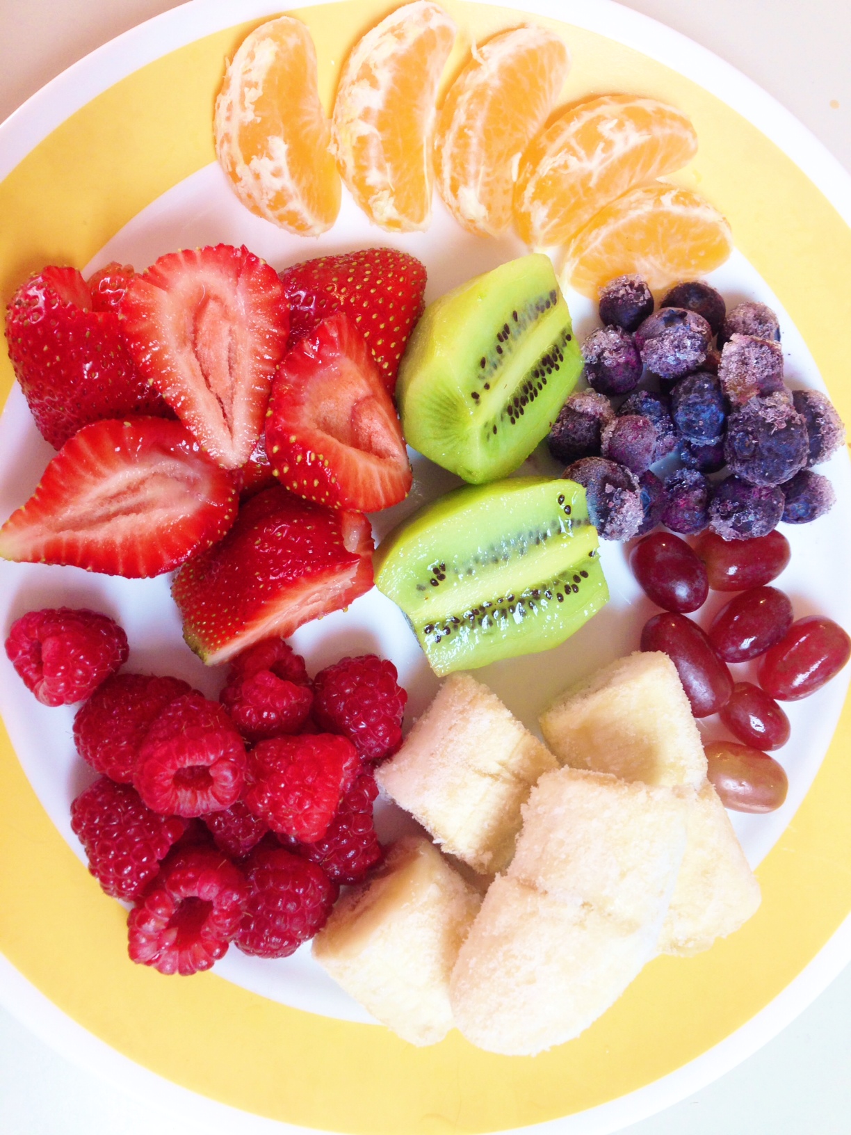 – About 1/4 – 1/3 cup of each fruit